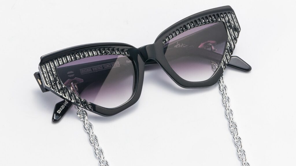 Sulle montature sono state riprodotte le eleganti scanalature delle colonne dei templi greci, mentre foglie d’oro e d’argento, incastonate nella struttura in acetato, evocano i dettagli preziosi con cui venivano adornate le divinità dell’Olimpo.